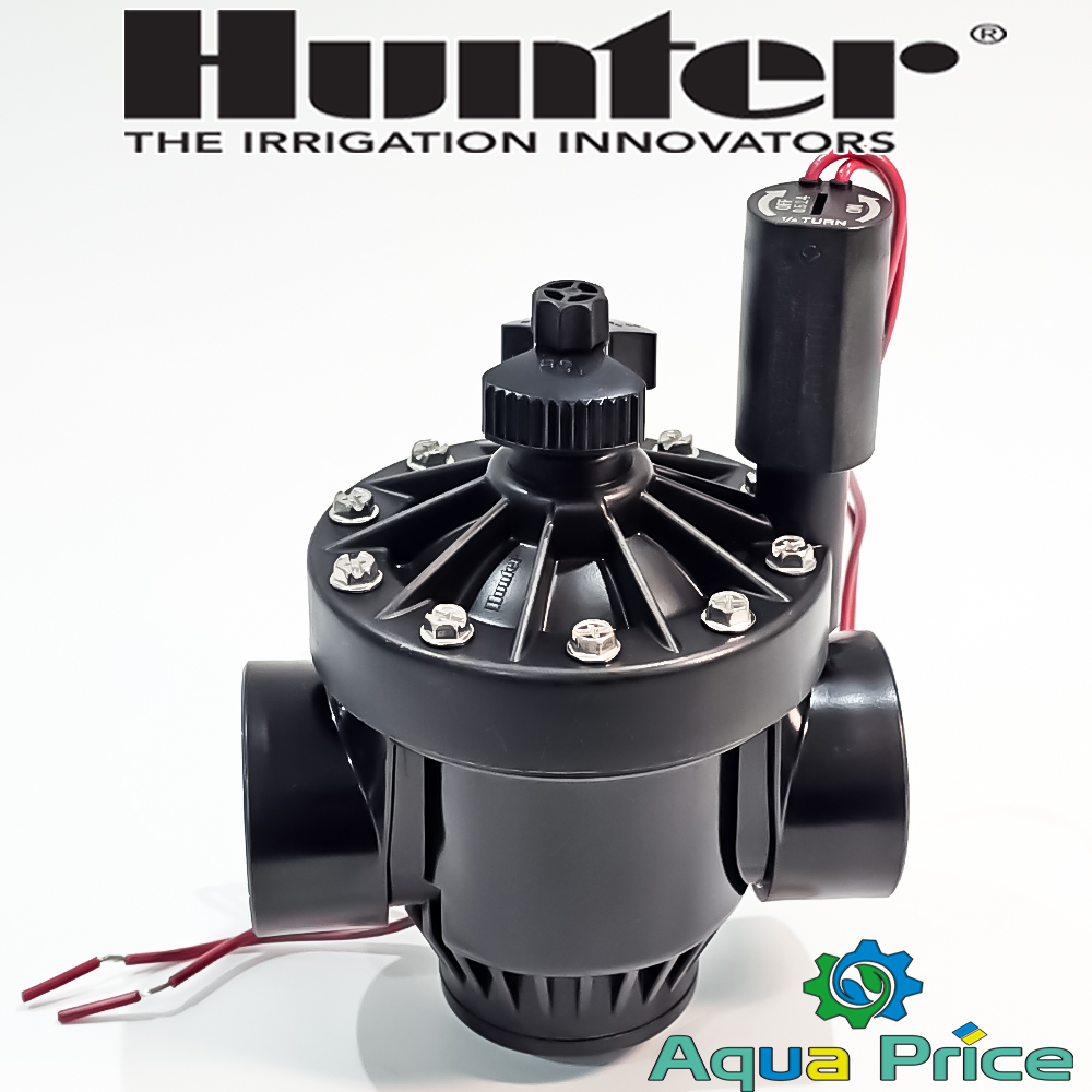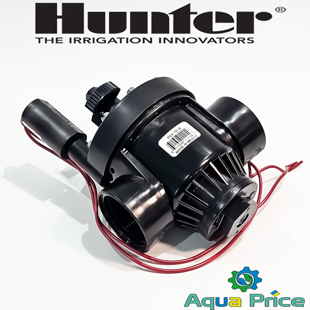 Клапан Hunter PGV-151-B - это устройство с резьбой 1,5", обеспечивающее управление потоком воды под действием электричества и электромагнитных сил. Питается клапан и его соленоид от 24 в переменного тока. При подаче питания проток открывается и вода идет в систему автоматического полива. На крышке корпуса имеется регулировочный винт, управляющий силой протока.