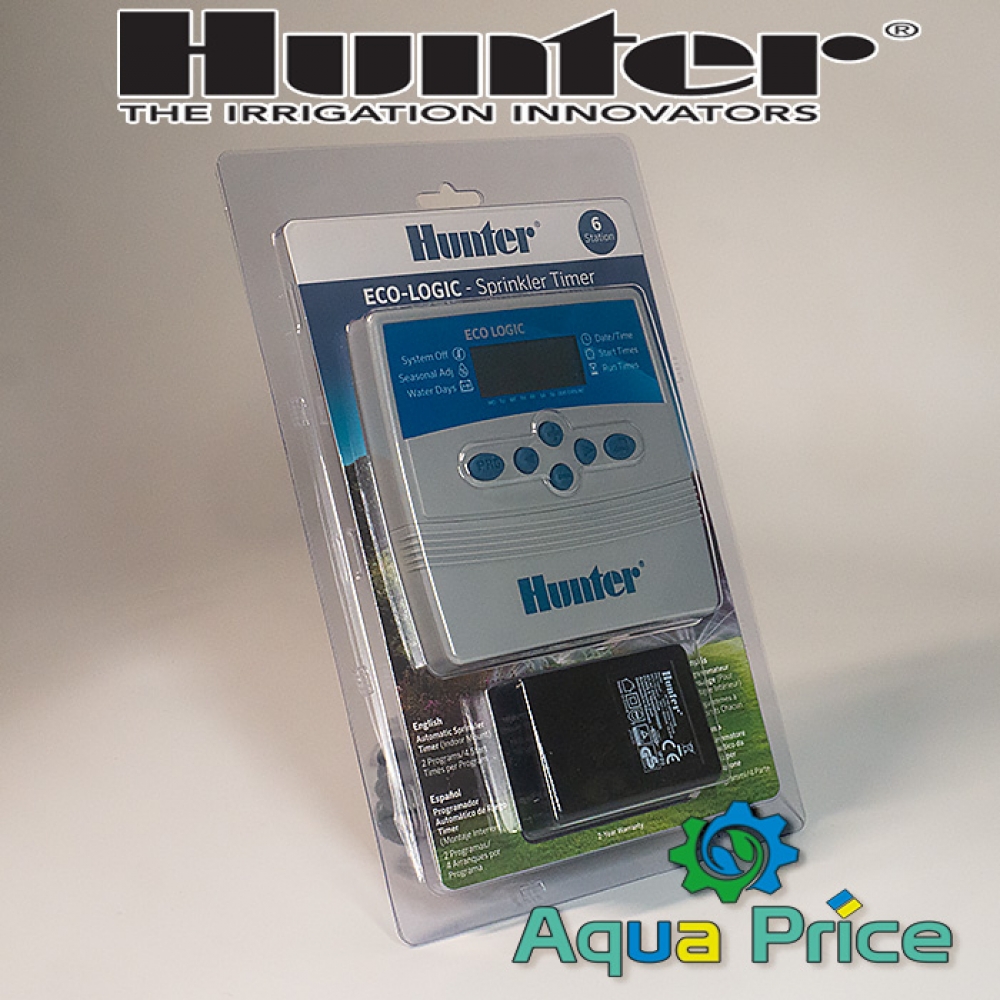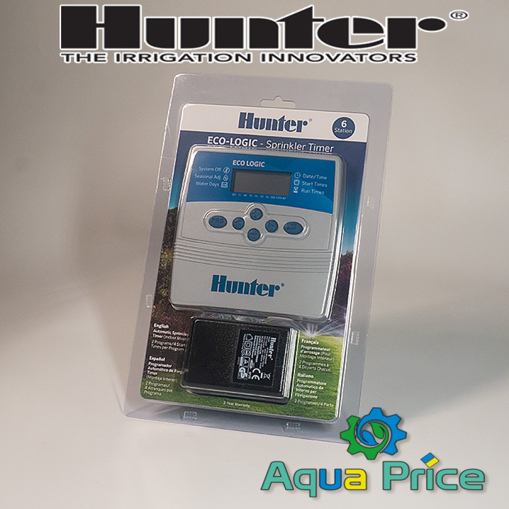 Контролеры ELC ECO Logic от Hunter просты в использовании, характеризуются высоким уровнем выносливости, надежности, отличным качеством сборки. Способны оросить 6 зон участка, установить режимы работы, запускаемые вручную либо автоматически с помощью компьютерной программы.