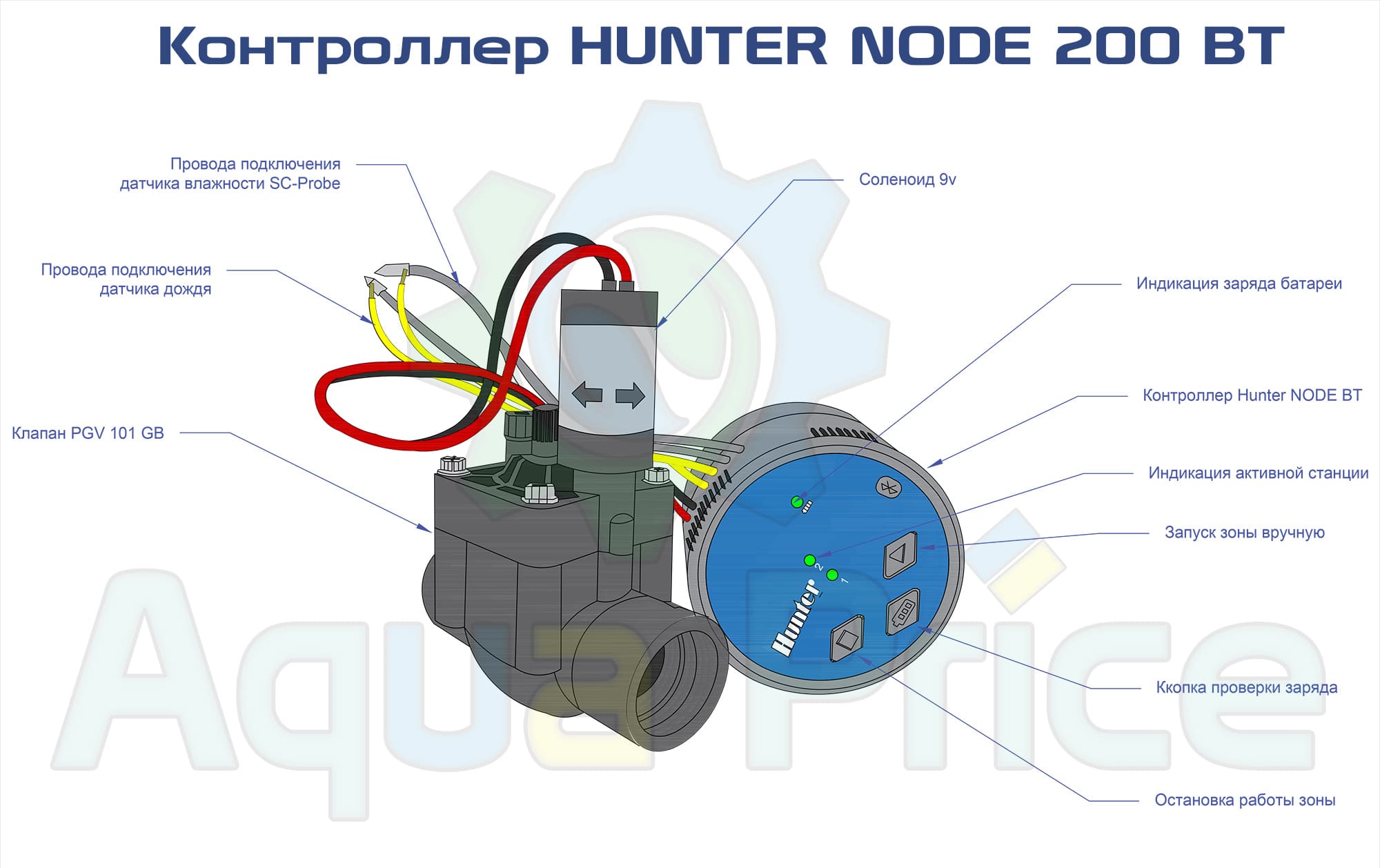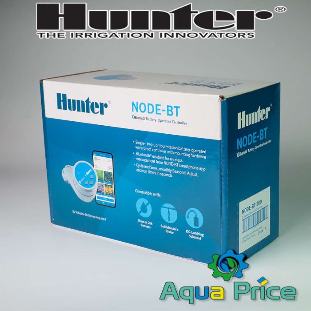 Автоматический контроллер Hunter NODE 200 BT – это продвинутая версия портативного контроллера орошения Hunter Node, включает Bluetooth технологию для управления системой полива с помощью мобильного приложения.