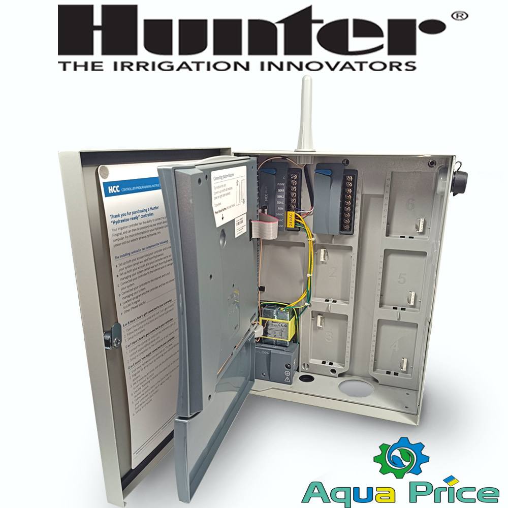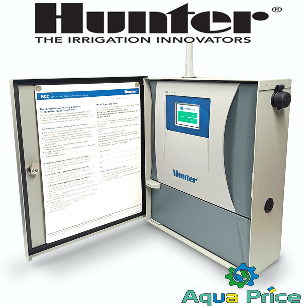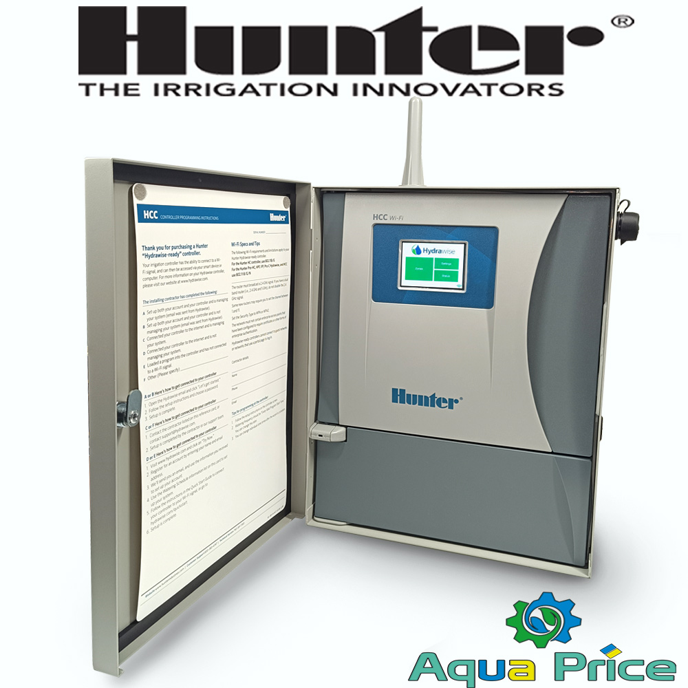 Hunter HCC-800-M – это интеллектуальный контроллер, позволяющий управлять системой автоматического полива Hunter от 8 до 54 зон небольших частных садов и крупных коммерческих объектов. Обладает встроенным WiFi-модулем, позволяет управлять поливом дистанционно, через специализированное мобильное приложение Hydrawise.