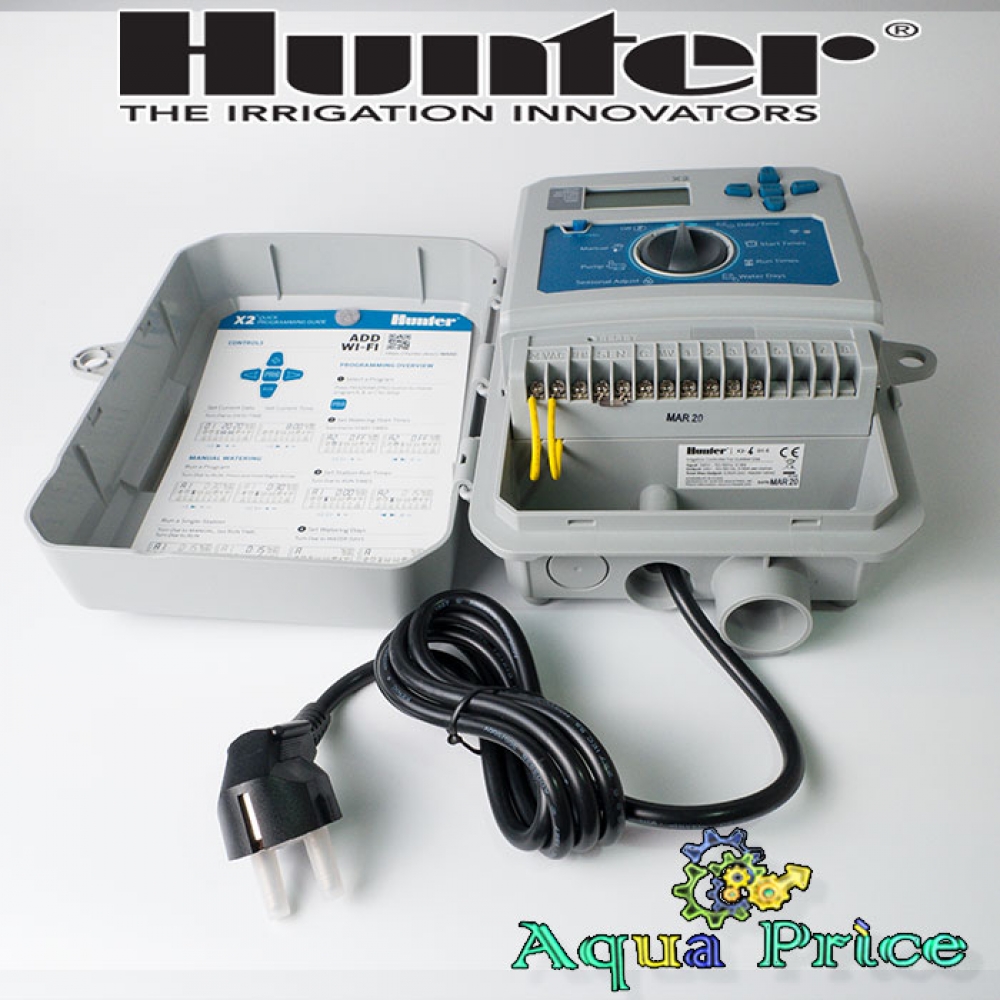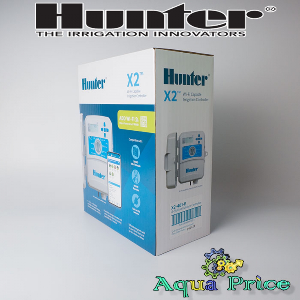 Контроллер Hunter X2-401-e - фиксированный контроллер на 4 станции для систем автоматического полива. Комплектуется модулем wi-fi с возможностью обмена данными в онлайн-режиме. Имеет компактные размеры и легко читаемый дисплей. Отличается простотой монтажа и программирования. Позволяет оптимизировать орошение участка с учетом конкретных погодных условиях без присутствия владельца.