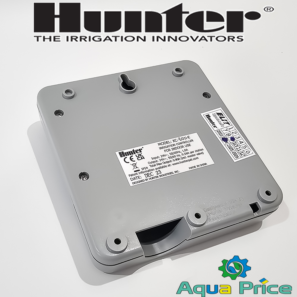Контроллер Hunter XC 801i-e (внутренний) – это автоматизированный комплекс для управления процессом орошения приусадебного участка, газона, парковых зон. Поддерживает управление 8 зон (8 электромагнитных клапанов). Оснащен 3 независимыми программами, автономной памятью на случай отключения электричества, выносным трансформатором 220/24 V.
