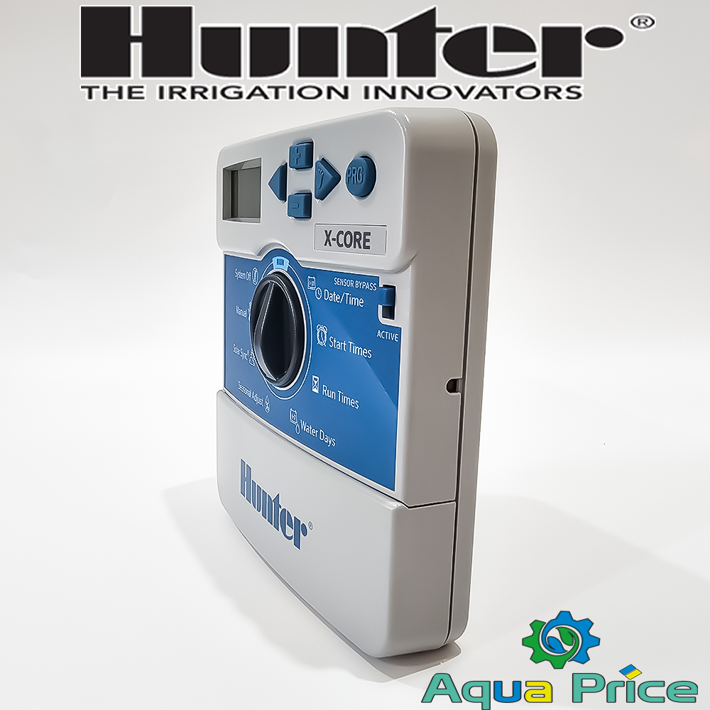 X-CORE-801i-e для автополива реализован в небольшом корпусе 150 мм-150 мм-30 мм, устанавливается внутри помещения, не оборудован защитным кожухом. Монтаж пульта управления выполняется возле выхода из помещения в легкодоступном месте. На контроллере находятся органы управления, программы и самодиагностика на случай возникновения неполадок.