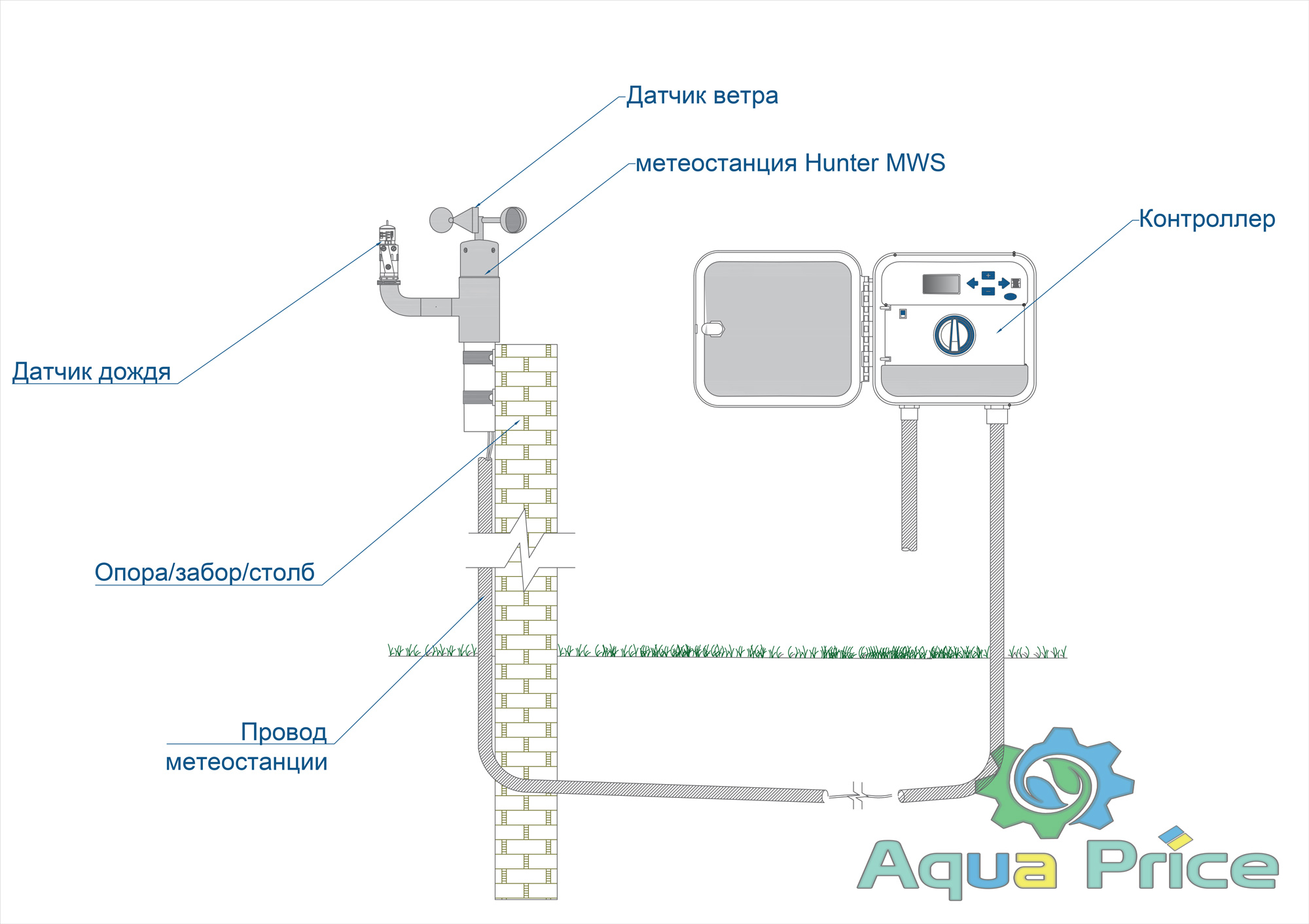 Если сенсор зарегистрирует ветер или дождь, он заблокирует цикл орошения. Активирует его после того, как пройдет время высыхания или утихнет ветер. MWS sensor нормированно расходует воду и электричество для питания насосного оборудования, отключая систему в неподходящие погодные условия.
