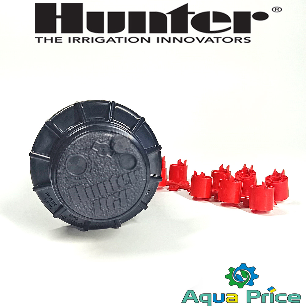 - клиентам предоставляются широкие возможности для комплектации дождевателей Hunter с наборами сопел – 12 красного цвета (стандарт), 8 синего (с увеличенным радиусом полива при пониженном давлении в системе), 8 серого цвета (при необходимости малого угла орошения по горизонтали);