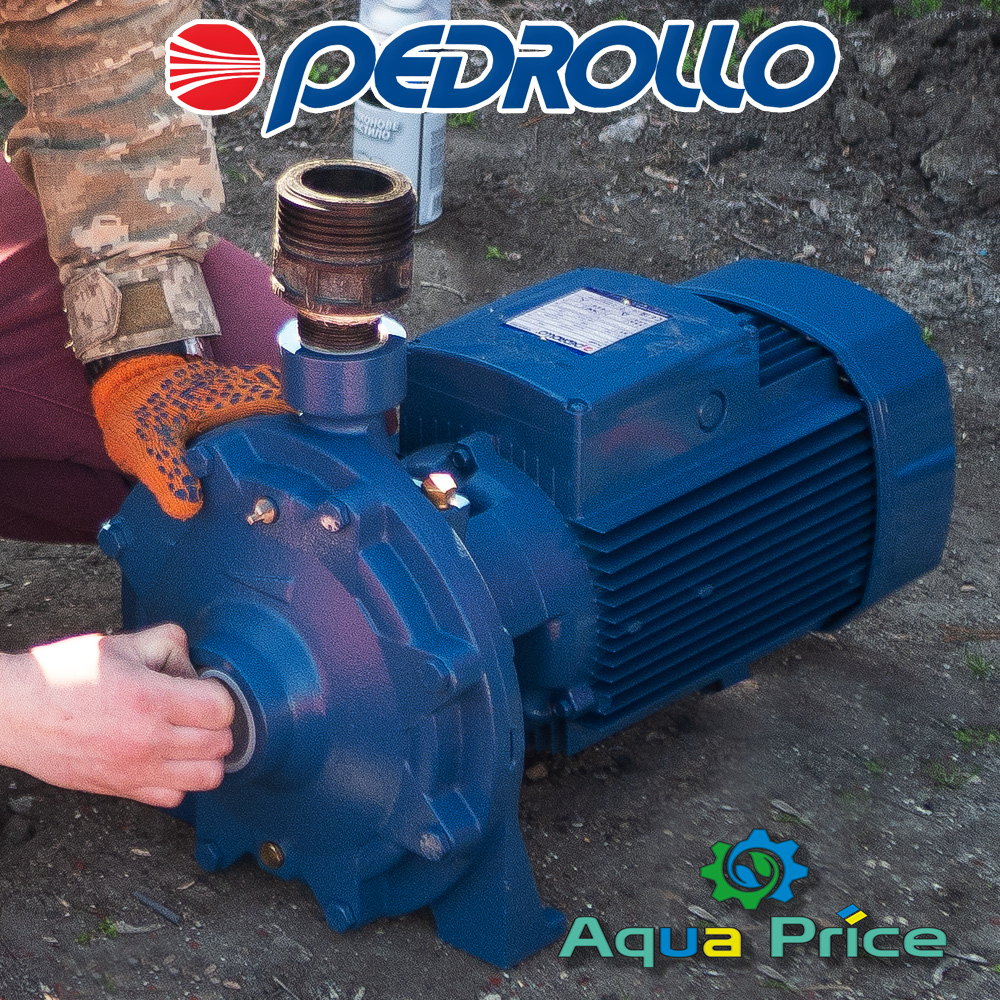 - Центробежный трехфазный насос Pedrollo 2CP 40/180A мощностью 7,5 кВт, перекачивает до 24 м³/час, создавая давление 8,5 атм. Размер входного патрубка 2", напорного 1,5".