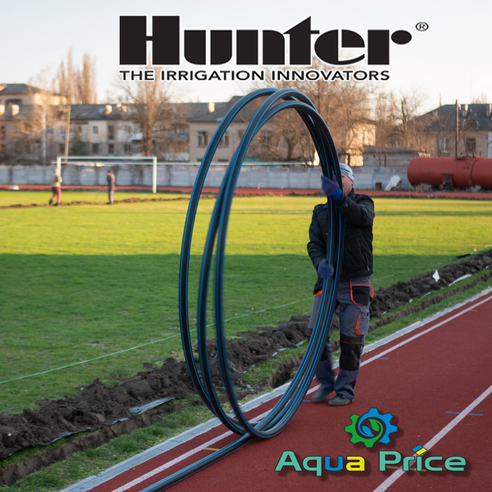 Сборный комплект для автоматического полива стадиона построен на оборудовании Hunter с дополнением опциями от Pedrollo, Irritec и VS Plast. Включает 9 зон (клапанов) дождевателей под управлением контроллера, запускающего насос в момент старта и открывающего каждую линию по очереди.