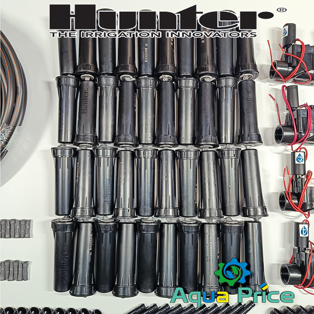 Дождеватели Pros-04 выбраны в комплекте не зря. Это проверенная модель зарекомендовавшая себя на объектах Aqua Price и наших партнеров, монтажных организаций. Представляет собой корпус с выдвижным 10см. штоком на который вкручивается распылительная форсунка. Функция дождевателя Hunter Pros-04 в момент полива поднять над газоном форсунку для распыления, а после спрятать ее в стакан ниже уровня земли, не мешая передвижению и уходу за участком.