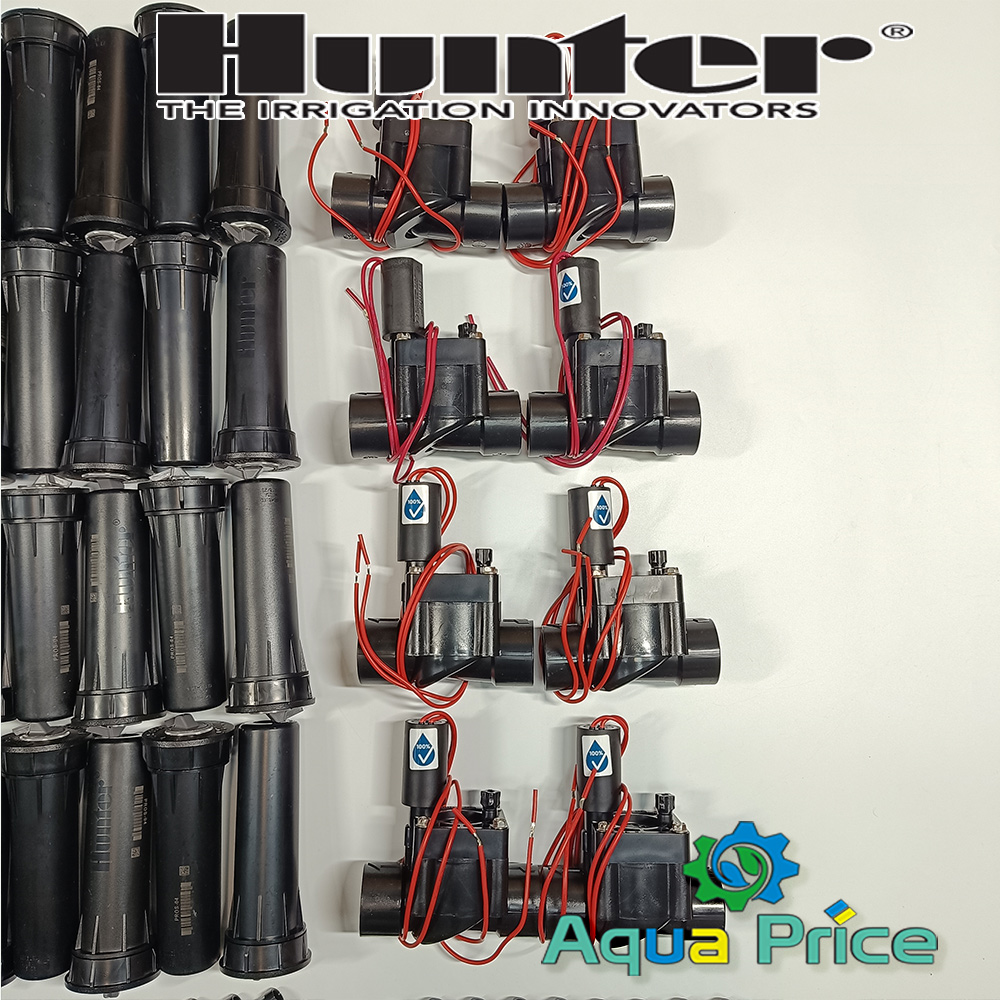 Электромагнитные клапана важный элемент оросительного комплекса, получая сигнал от контроллера управления открывают и перекрывают воду в зоне полива. В наборе по умолчанию идут электроклапаны PGV-100-Gb Hunter. Модель имеет резьбу подключения 1", соленоид на 24в переменного тока и не имеет регулировки потока. Вы можете уменьшить количество, если у вас меньше зон для полива и заменить клапана на Hunter PGV-101-Gb, по сути то же устройство, но с регулировкой потока.
