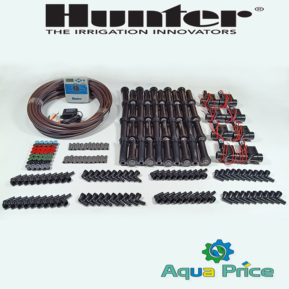 Комплект полива Hunter на 8 зон - это набор оборудования и материалов для монтажа системы автоматического полива на частной территории площадью 600-800 м². Комплект позволяет владельцу загородного дома смонтировать своими руками полив газона и декоративных растений. В состав оборудования входят проверенные модели товаров от Hunter и аналоги, на которые действует гарантия. Не использованное оборудование можно вернуть в магазин или обменять на более необходимые детали.