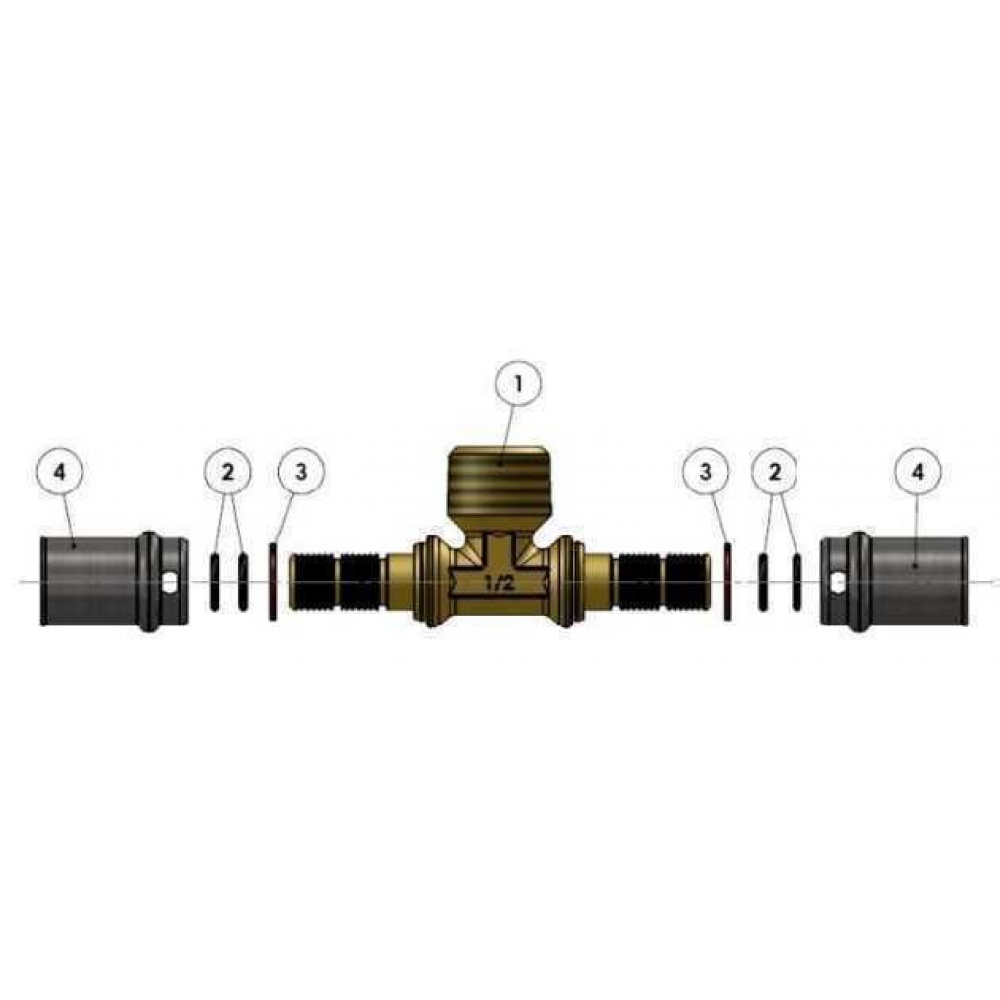 Тройники серии AP 133 были спроектированы и реализованы для оказания помощи установщику, сокращая время на монтаж и увеличивая характеристики стойкости. На рисунке. 1. Тело. 2. Уплотнительное кольцо. 3. Шайба. 4. Втулка из нержавеющей стали.