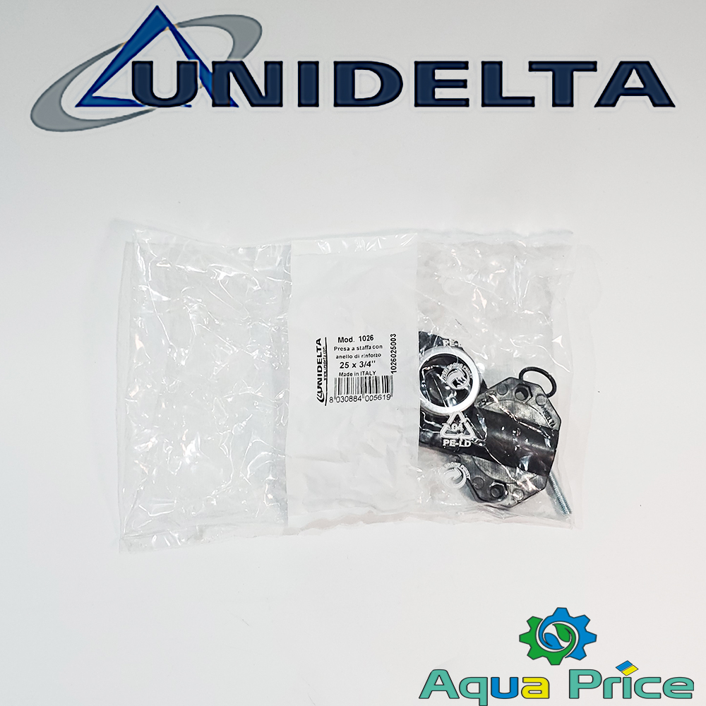 Хомут обжимной 25 мм с внутренней резьбой 3/4" Unidelta – это технически совершенное устройство для быстрого и надежного создания отводов на ПНД трубах. Надежные материалы, продуманная конструкция и соответствие международным стандартам делают его выбором номер один для специалистов. Приобретайте оборудование с гарантией качества и по акционной цене в интернет-магазине Aqua Price!