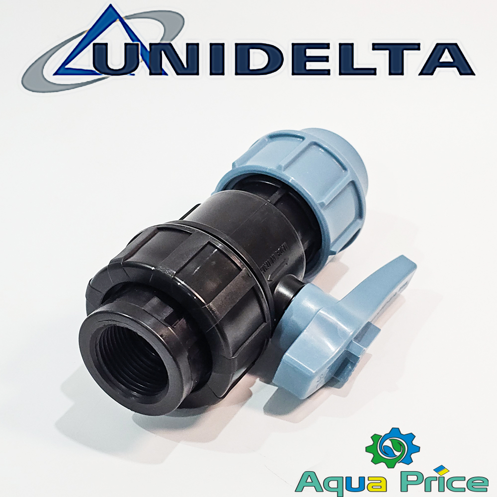 Unidelta 25 мм с внутренней резьбой 3/4" — это шаровый кран, разработанный для регулировки потока воды. Обеспечивает удобную стыковку с полиэтиленовыми трубами благодаря входу на 25 мм и внутренней резьбе (ВР) на 3/4" для подключения к оборудованию (фитингам, узлам фильтрации и выходам клапанов). Соединение гарантирует простую установку без необходимости применения сложного оборудования. Устанавливается в начале автополива на магистральную трубу или в приямке вблизи насосного оборудования.