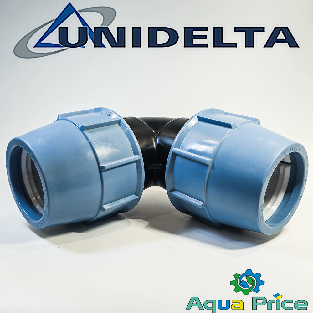 Угловой фитинг Unidelta предназначен для организации поворота трубопровода на 90 градусов с минимальными потерями потока воды. Конструкция обеспечивает прочное соединение благодаря зажимной (обжимной) системе фиксации. Это упрощает монтаж и позволяет использовать изделие в условиях повышенной влажности или агрессивной внешней среды.