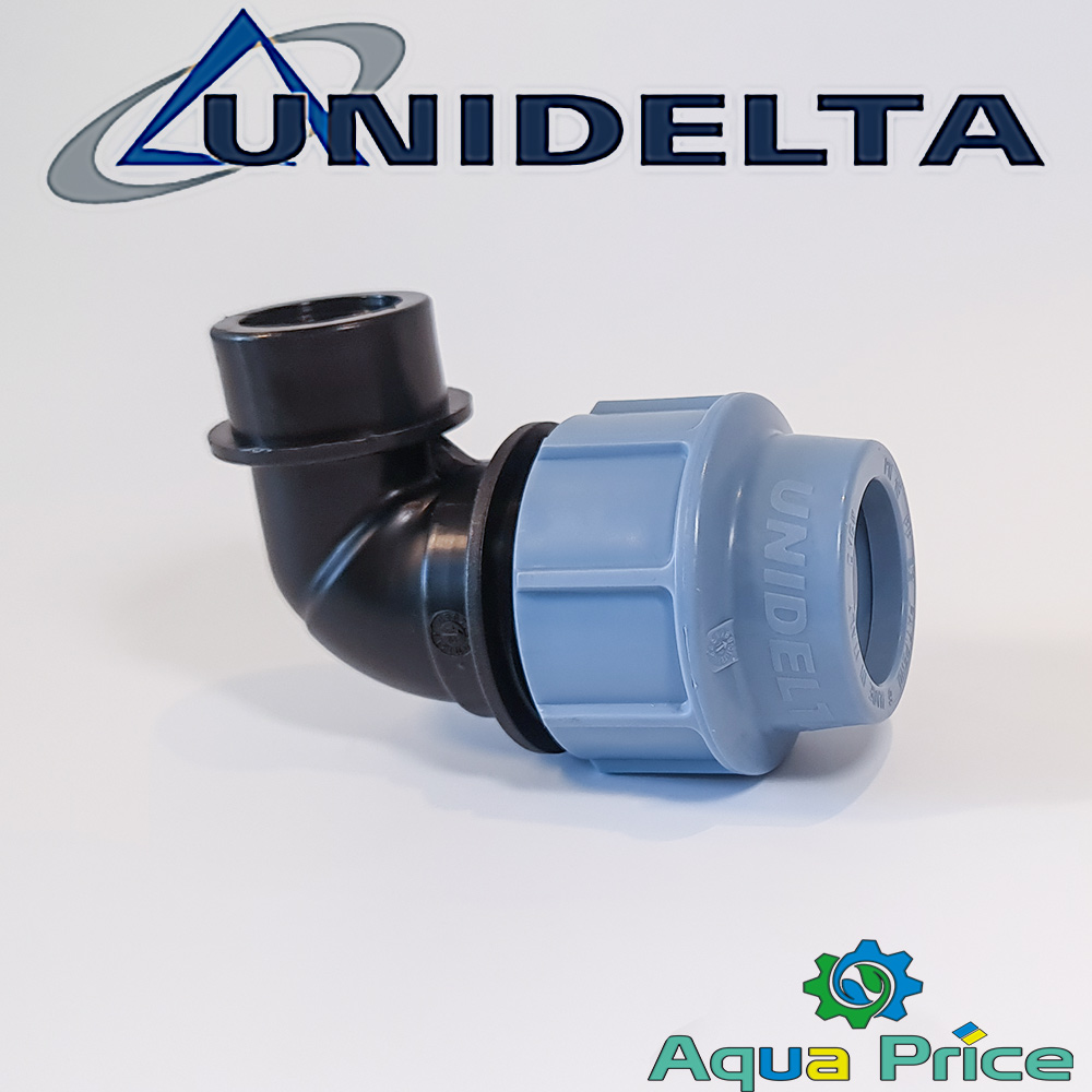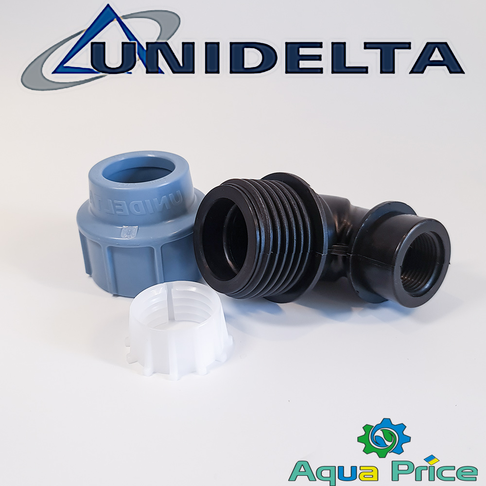 Угол компрессионный Unidelta 40-1" ВР предназначен для надежного соединения полиэтиленовых (ПНД) труб.