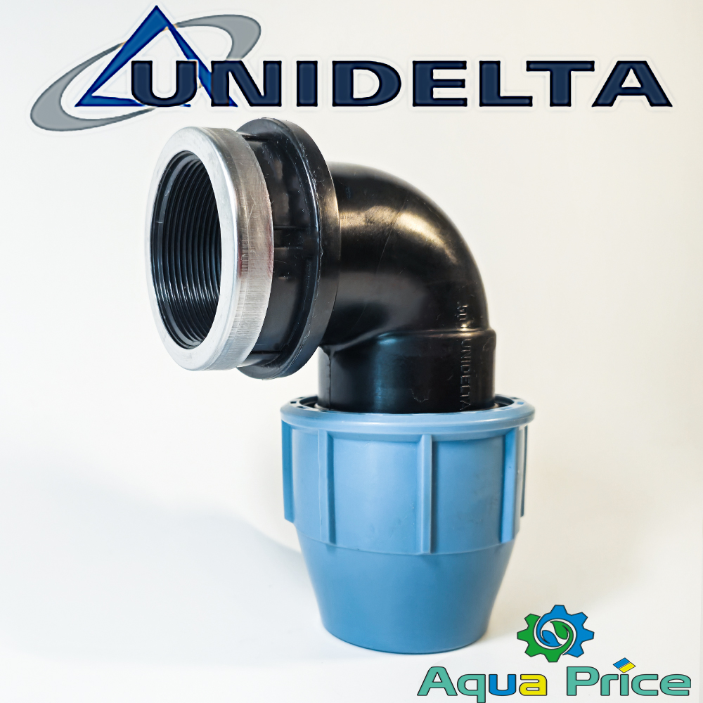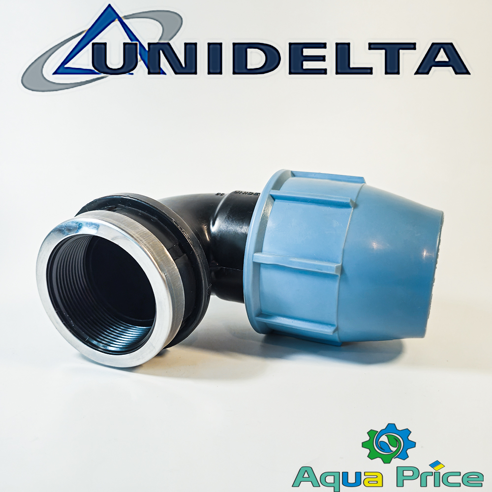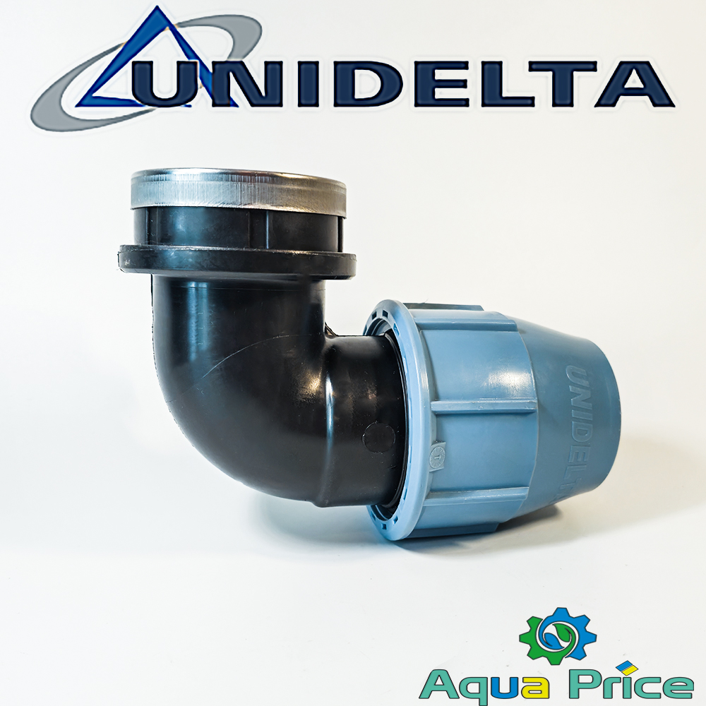 Компрессионный угловой фитинг Unidelta 63-2 1/2" ВР – это профессиональное колено для создания поворотных соединений в системах водоснабжения, автополива газонов и ирригации. Основная задача – изменять направление потока на 90° при сохранении герметичности и устойчивости соединения под давлением до 16 Бар.