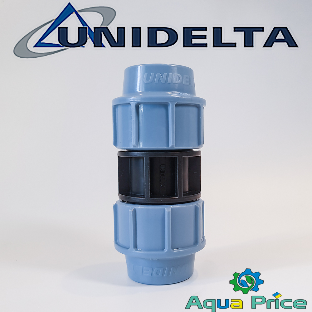 Фитинг Unidelta имеет компрессионный тип соединения, который обеспечивает герметичное соединение труб 40 мм, монтаж не требует применения сварочного оборудования или специальных навыков. Внутренние компоненты муфты (обжимные кольца и уплотнительные элементы) обеспечивают сцепление и отсутствие протечек.