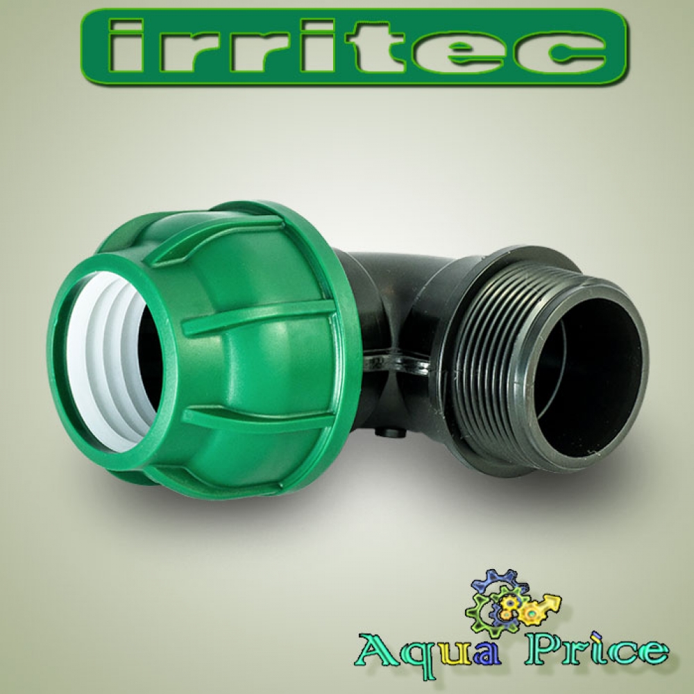 Одна из разработок итальянской компании Irritec – серия полиэтиленовых (п/э) фитингов колено 40-1 1/2" НР. Выпускаются соединители в компрессионном исполнении (сборка без ключей) в различных вариантах: фитинг угловой равносторонний, с наружной резьбой и внутренней.