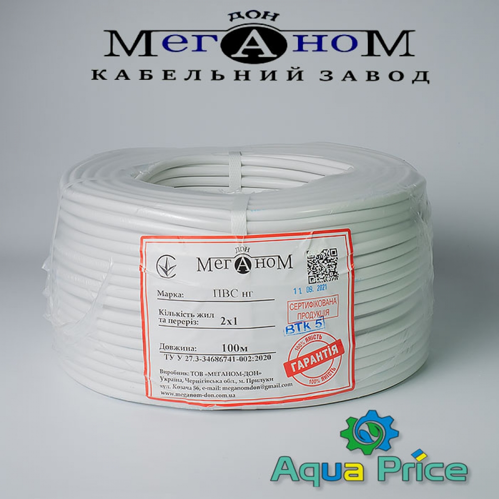 Кабель Меганом ПВС 2-1 ГОСТ белый