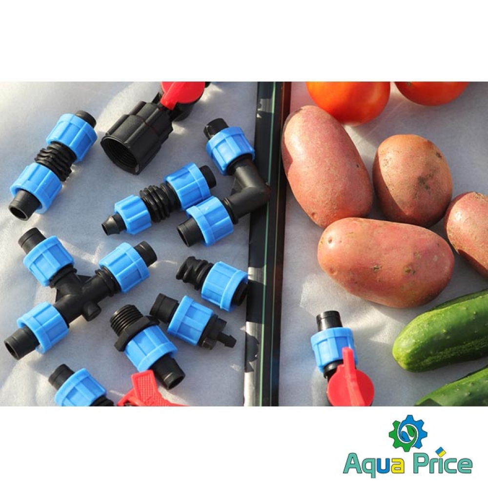 Особенности установки зажимного тройника не требуют навыков. Нужно использовать специальные гайки для фиксации капельной ленты со всех краев. Для этого нужно сначала раскрутить их, надень ленту и зафиксировать.