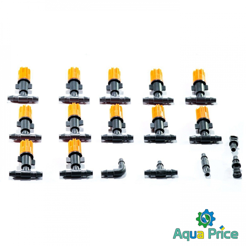 Конструкция достаточно проста: необходимо соединить шланг, подающий воду на Вашем садовом участке с адаптером из набора при помощи хомута, закрепить форсунки и подать воду. В наборе уже представлено всё для крепления: колышки и хомуты, тройники, - лишние траты на фурнитуру не нужны.