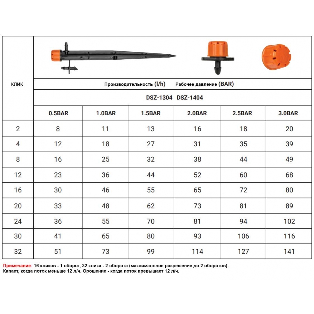 Регулируемая форсунка 0-70 л/ч на колышке с установочным комплектом, DSZ-1404
