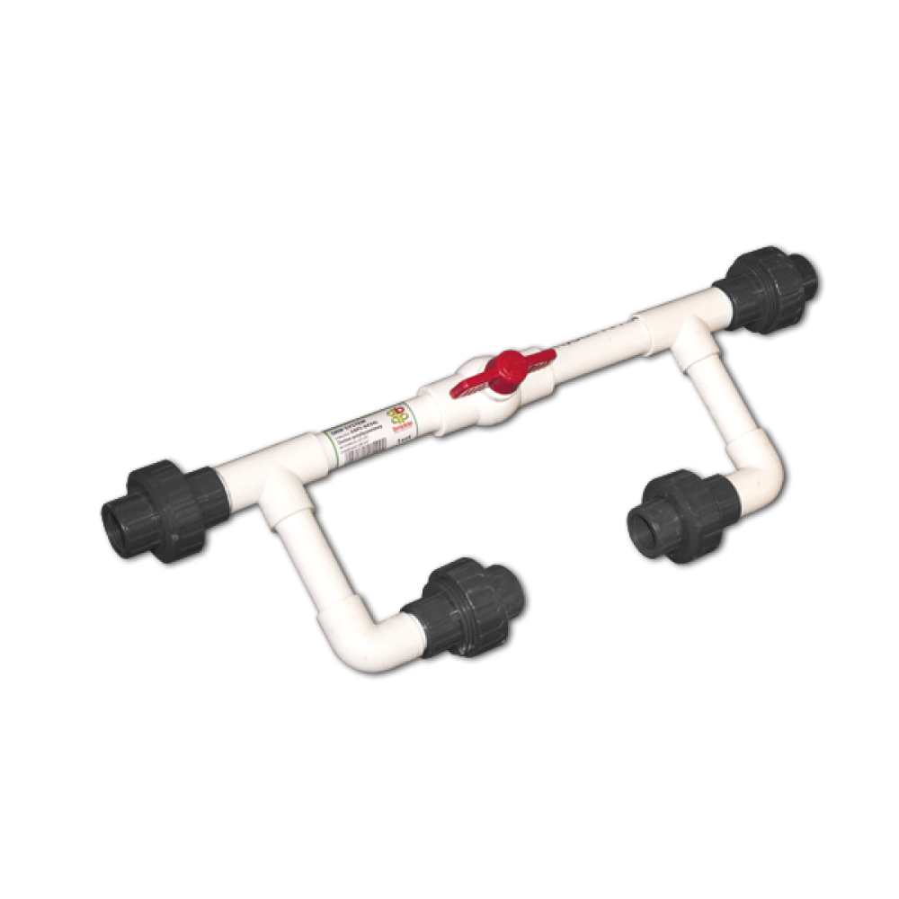 Байпас или обвязка инжектора Bradas предназначен для параллельного включения инжектора Вентури в систему орошения, а также для регулировки давления и соответственно скорости всасывания удобрений. Регулировка происходит путем вращения вентиля. Байпас выбирается исходя из дюймового размера инжектора.