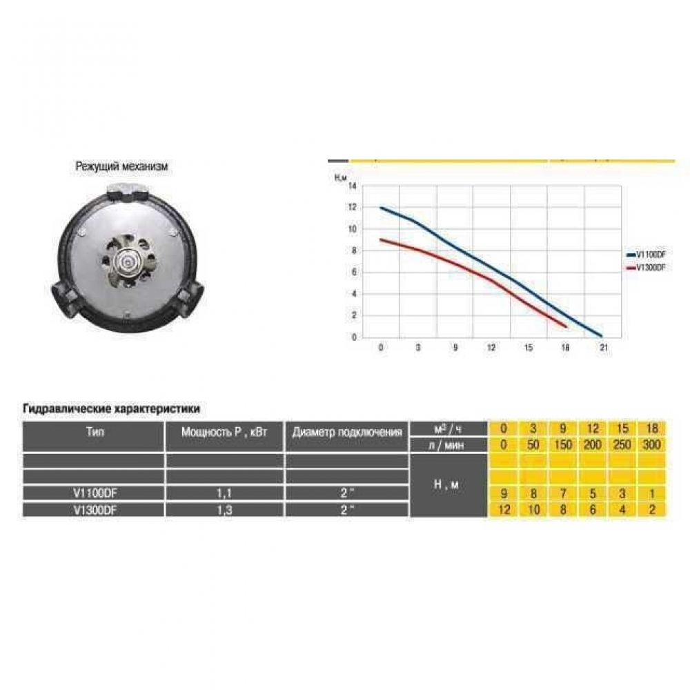Фекальный насос V1300 DF выполнен в одном моноблочном корпусе вместе с электродвигателем и оснащен рабочим колесом системы VORTEX. Насосы с такой системой комплектуются открытым вихревым рабочим колесом, обращенным назад относительно всасывающей крышки и работающем по принципу жидкостного вихря. Рабочее колесо вращает жидкость, находящуюся в корпусе насоса, создавая вихрь, который передает кинетическую энергию жидкости, выталкивая ее из нагнетательного патрубка, и всасывая новую жидкость из кругового прохода в нижней основе.