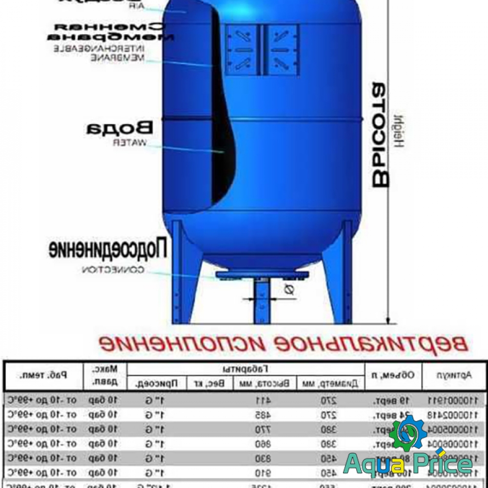 Пространство гидроаккумулятора разделено сменной мембраной на две камеры: водяную и воздушную. В воздушной камере находится предварительно закачанный под давлением воздух. Контакт воды с металлическими поверхностями корпуса мембранного бака невозможен, так как вся вода находится в водяной камере - мембране, материалом которой является износостойкий резиновый материал, не восприимчивый к воздействию бактерий и удовлетворяющий всем гигиеническим и санитарным нормам для питьевой воды. Со стороны воздушной камеры в корпусе мембранного бака располагается пневмоклапан, предназначенный для регулирования давления воздуха.