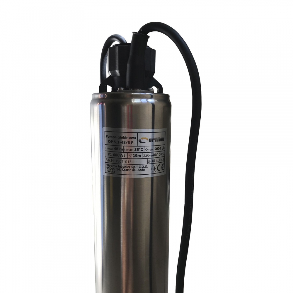 Насос скважинный с нижним забором воды (колодезный) OPTIMA OP 5,1 - 48/6 F 0,6 кВт диаметром 4 " предназначенный для подачи воды из колодязев,скважин, цистерн и т.д. диаметром от 100 мм и больше , когда использование поверхностного насоса невозможно или нецелесообразно. При этом нижний забор позволяет взять из колодца больше воды , что особенно важно при малом количестве воды в колодце.