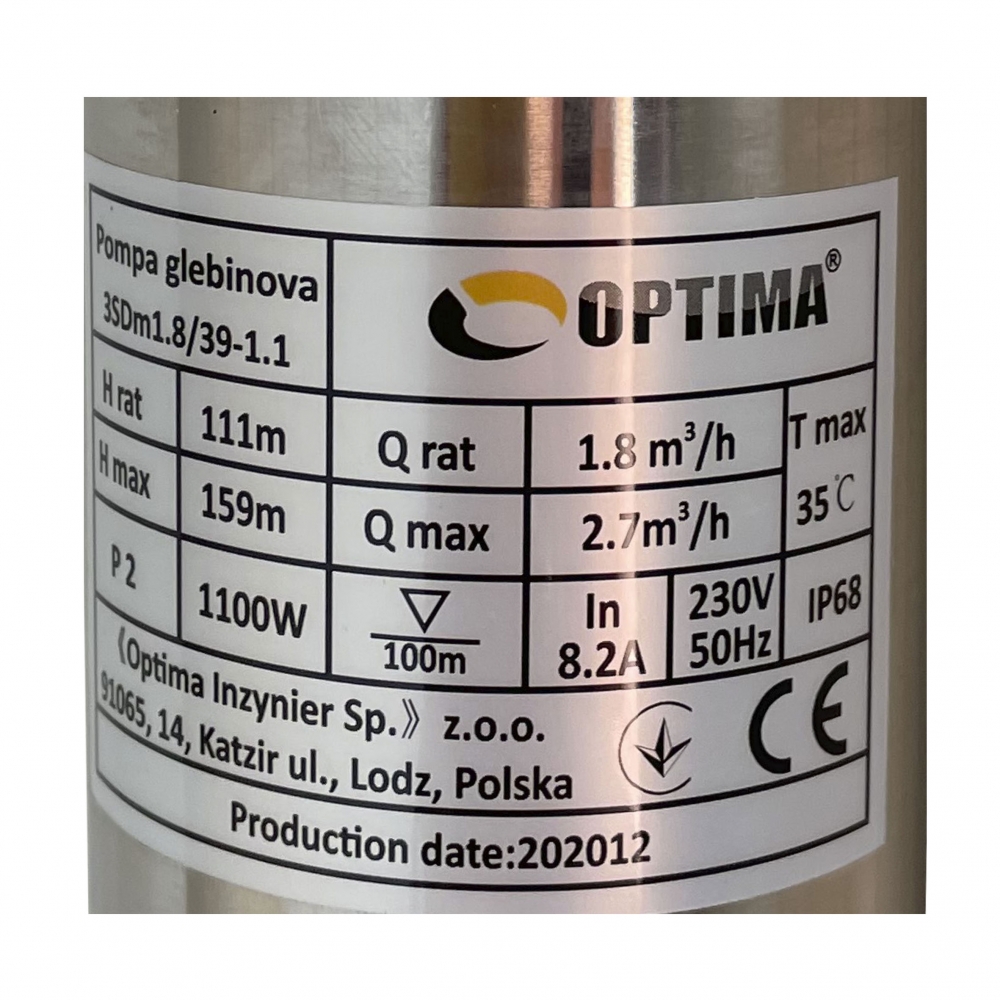 Насос скважинный с повышенной устойчивостью к песку OPTIMA 3SDm1.8/39 1.1 кВт 159м NEW диаметром 3" предназначенный для подачи воды из скважин (диаметром от 3 "или 76 мм) и открытых водоемов с глубиной больше чем 9 м, когда использование поверхностного насоса невозможно или нецелесообразно.