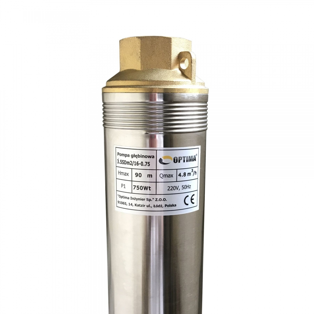 Насос скважинный с повышенной устойчивостью к песку OPTIMA 3.5SDm2/16 0.75 кВт 90м диаметром 3,5 " предназначенный для подачи воды из скважин (диаметром от 3,5 "или 87 мм) и открытых водоемов с глубиной больше чем 9 м, когда использование поверхностного насоса невозможно или нецелесообразно.