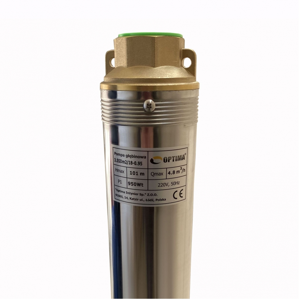 Насос скважинный с повышенной устойчивостью к песку OPTIMA 3.5SDm2/18 0.95 кВт 101м диаметром 3,5 " предназначенный для подачи воды из скважин (диаметром от 3,5 "или 87 мм) и открытых водоемов с глубиной больше чем 9 м, когда использование поверхностного насоса невозможно или нецелесообразно.