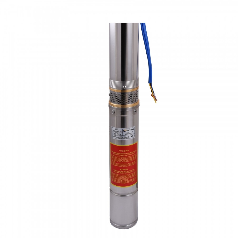 Насос скважинный с повышенной устойчивостью к песку OPTIMA 3.5SDm3/15 0.95 кВт 82м диаметром 3,5 " предназначенный для подачи воды из скважин (диаметром от 3,5 "или 87 мм) и открытых водоемов с глубиной больше чем 9 м, когда использование поверхностного насоса невозможно или нецелесообразно.