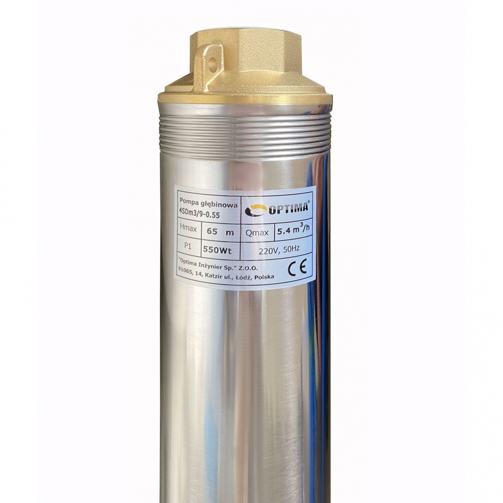 Насос скважинный с повышенной устойчивостью к песку OPTIMA 4SDm3/9 0.55 кВт 65м диаметром 4 " предназначенный для подачи воды из скважин (диаметром от 4 "или 101 мм) и открытых водоемов с глубиной больше чем 9 м, когда использование поверхностного насоса невозможно или нецелесообразно.