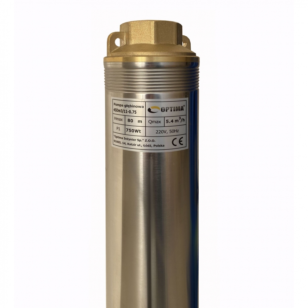 Насос скважинный с повышенной устойчивостью к песку OPTIMA 4SDm3/11 0.75 кВт 80м диаметром 4" предназначенный для подачи воды из скважин (диаметром от 4 "или 101 мм) и открытых водоемов с глубиной больше чем 9 м, когда использование поверхностного насоса невозможно или нецелесообразно.