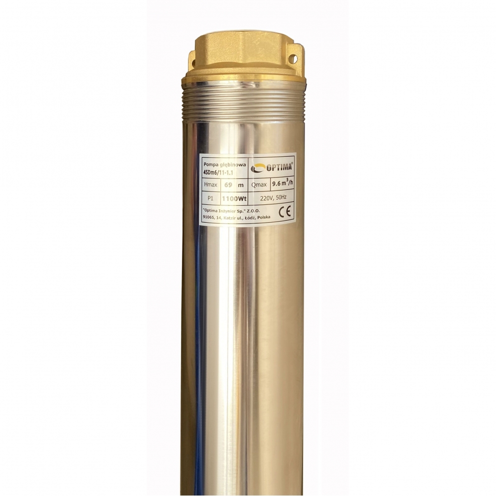 Насос скважинный с повышенной устойчивостью к песку OPTIMA 4SDm6/11 1.1 кВт 69м диаметром 4" предназначенный для подачи воды из скважин (диаметром от 4 "или 101 мм) и открытых водоемов с глубиной больше чем 9 м, когда использование поверхностного насоса невозможно или нецелесообразно.