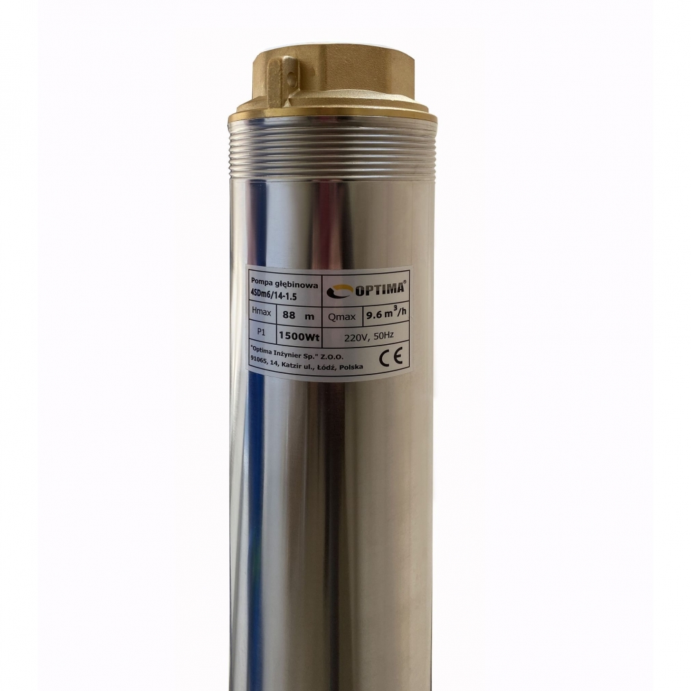 Насос скважинный с повышенной устойчивостью к песку OPTIMA 4SDm6/14 1.5 кВт 88м диаметром 4" предназначенный для подачи воды из скважин (диаметром от 4 "или 101 мм) и открытых водоемов с глубиной больше чем 9 м, когда использование поверхностного насоса невозможно или нецелесообразно.