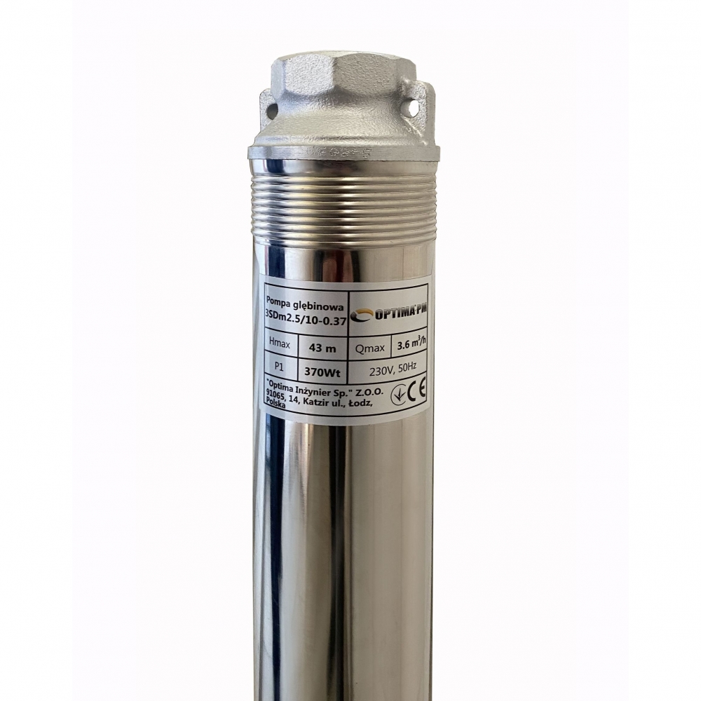 Насос скважинный с повышенной устойчивостью к песку OPTIMA PM 3SDm2.5/10 0.37 кВт 46м диаметром 3" предназначенный для подачи воды из скважин (диаметром от 3 "или 76 мм) и открытых водоемов с глубиной больше чем 9 м, когда использование поверхностного насоса невозможно или нецелесообразно.