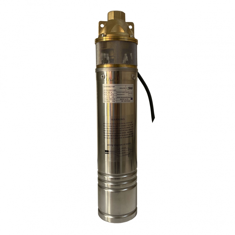Насос скважинный вихревой VOLKS pumpe 4SKm100 0.75кВт предназначен для подъема воды из глубоких скважин, колодцев и любых других источников и водоснабжения жилых домов, коттеджей. Насос может использоваться вместе с баком для автоматического водоснабжения.