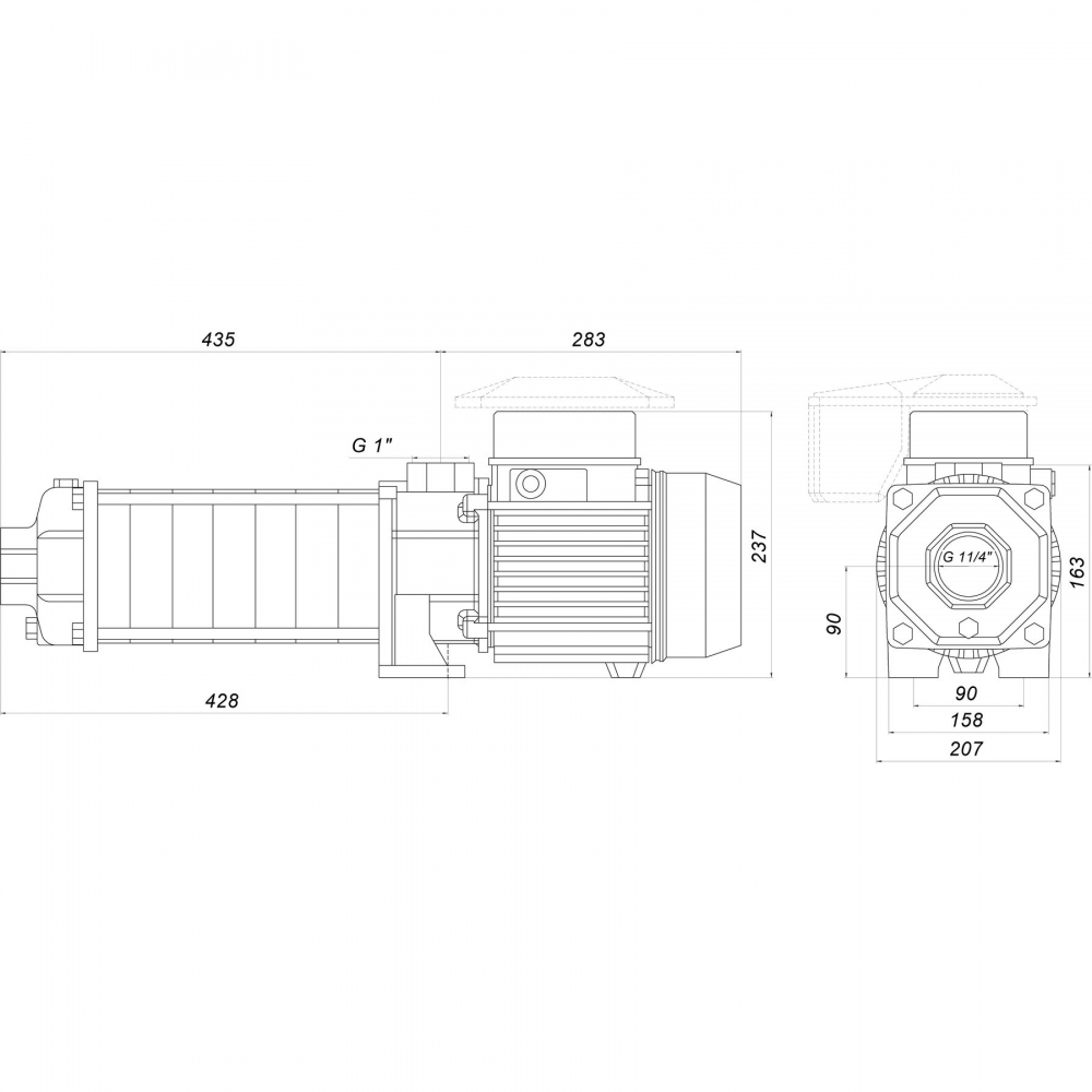 •Всасывающий и напорный патрубок - резьбовые.