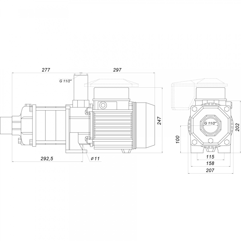• Диаметр всасывающего патрубка - 1 1/2"