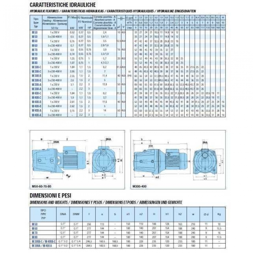 Серия М включает в себя наружные самовсасывающие электронасосы центробежного типа с одним рабочим колесом. Эффект самовсасывания достигается благодаря эжектору ( принцип Вентури), установленному в корпусе насоса.