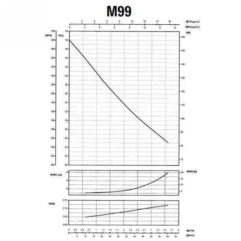 • Рабочие параметры обеспечивают продолжительный срок службы насоса при перекачивании чистой воды с плотностью 1000 кг/куб.м.