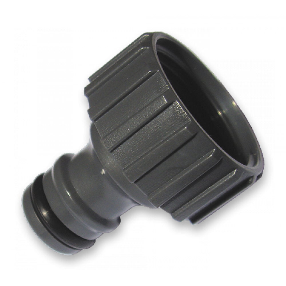 Адаптер оснащен внутренней резьбой для накручивания на кран 3/4" и ниппелем для соединения с коннектором.