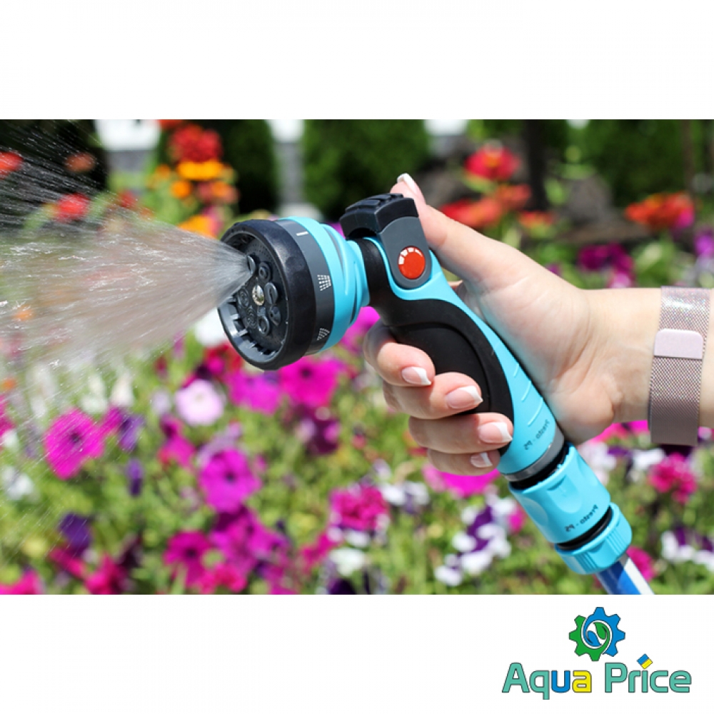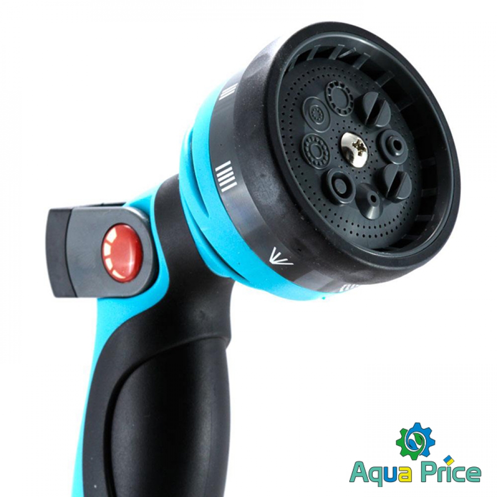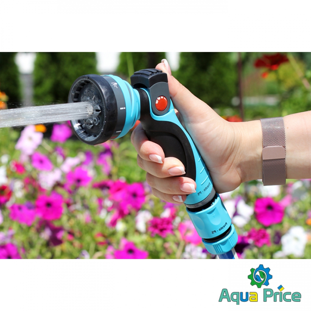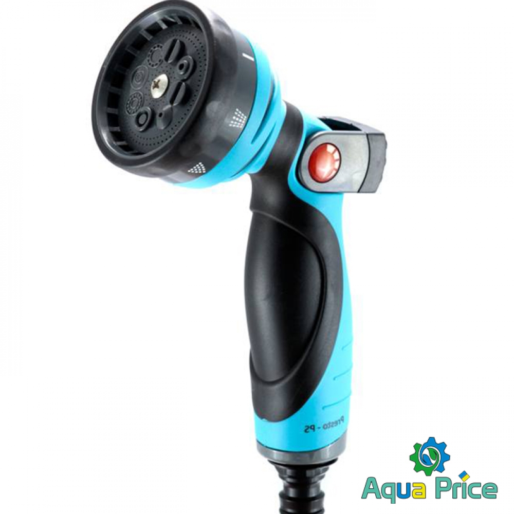 Пистолет для полива Presto-PS (7731) используется для ручного полива газонов средней и небольшой площади, огородов, цветников, уборки дорожек на придомовой территории, мытья садового инвентаря и техники. Поворотная головка пистолета имеет 8 положений и регулирует форму струи и степень распыления воды. Возможные режимы работы: мягкая струя, жесткая струя, конус, туман, душ, плоский вертикальный, плоский горизонтальный. Включение и регулировка потока воды производится удобным прорезиненным переключателем на корпусе дождевателя. Подключается к садовым шлангам диаметром 1/2, 5/8 и 3/4 дюйма при помощи стандартных коннекторов. Рекомендуемое рабочее давление в системе от 2 до 4 атмосфер. Изготовлен поливочный пистолет из металла, долговечный, стойкий к механическим повреждениям, воздействию ультрафиолета и водорастворимых удобрений.