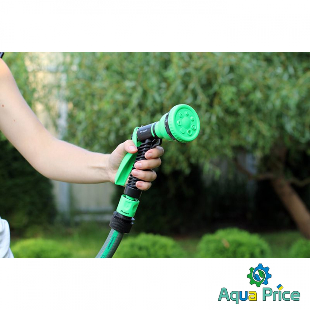 Пистолет для полива Presto-PS (4440) используется для ручного полива газонов средней и небольшой площади, огородов, цветников, уборки дорожек на придомовой территории, мытья садового инвентаря и техники. Поворотная головка пистолета имеет 7 положений и регулирует форму струи и степень распыления воды. Возможные режимы полива: мягкая струя, жесткая струя, конус, туман, душ, плоский вертикальный, плоский горизонтальный. Подключается к садовым шлангам диаметром 1/2, 5/8 и 3/4 дюйма при помощи стандартных коннекторов. Рекомендуемое рабочее давление в системе от 2 до 4 атмосфер. Изготовлен поливочный пистолет из качественного пластика, долговечный, стойкий к механическим повреждениям, воздействию ультрафиолета и водорастворимых удобрений.