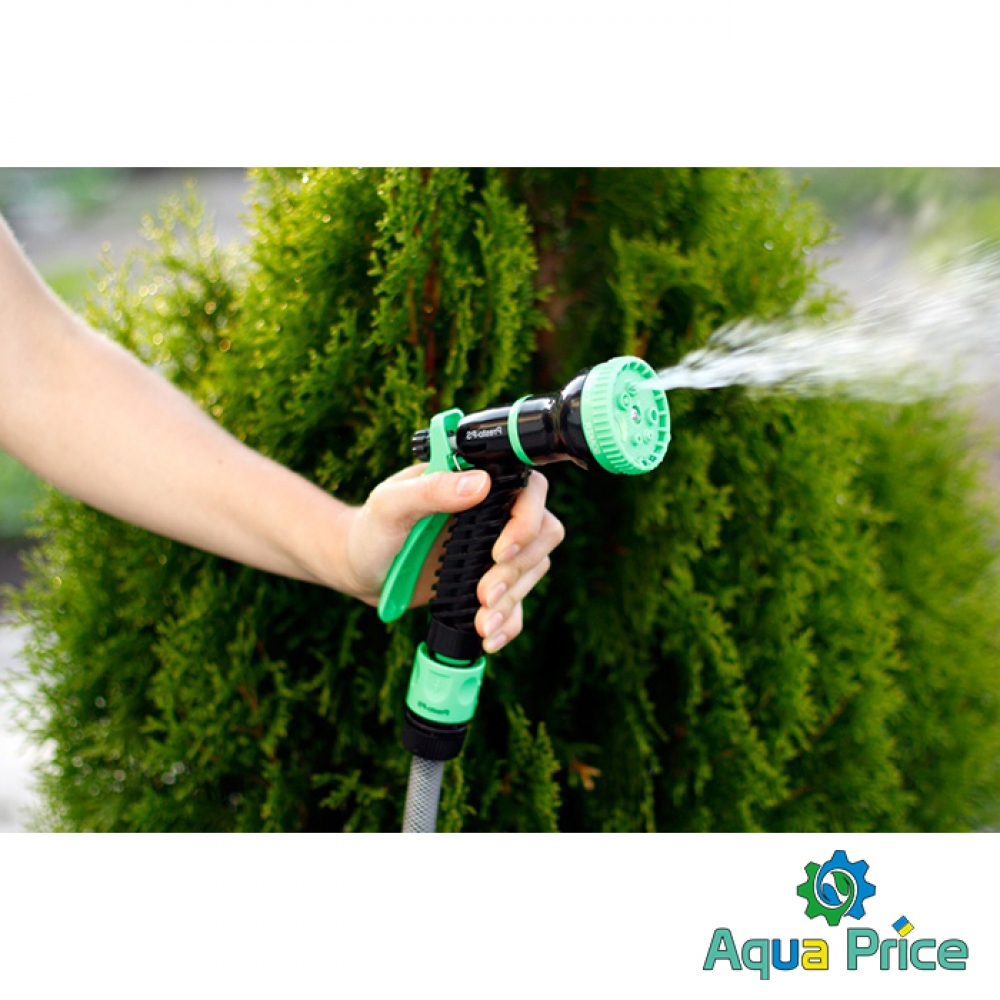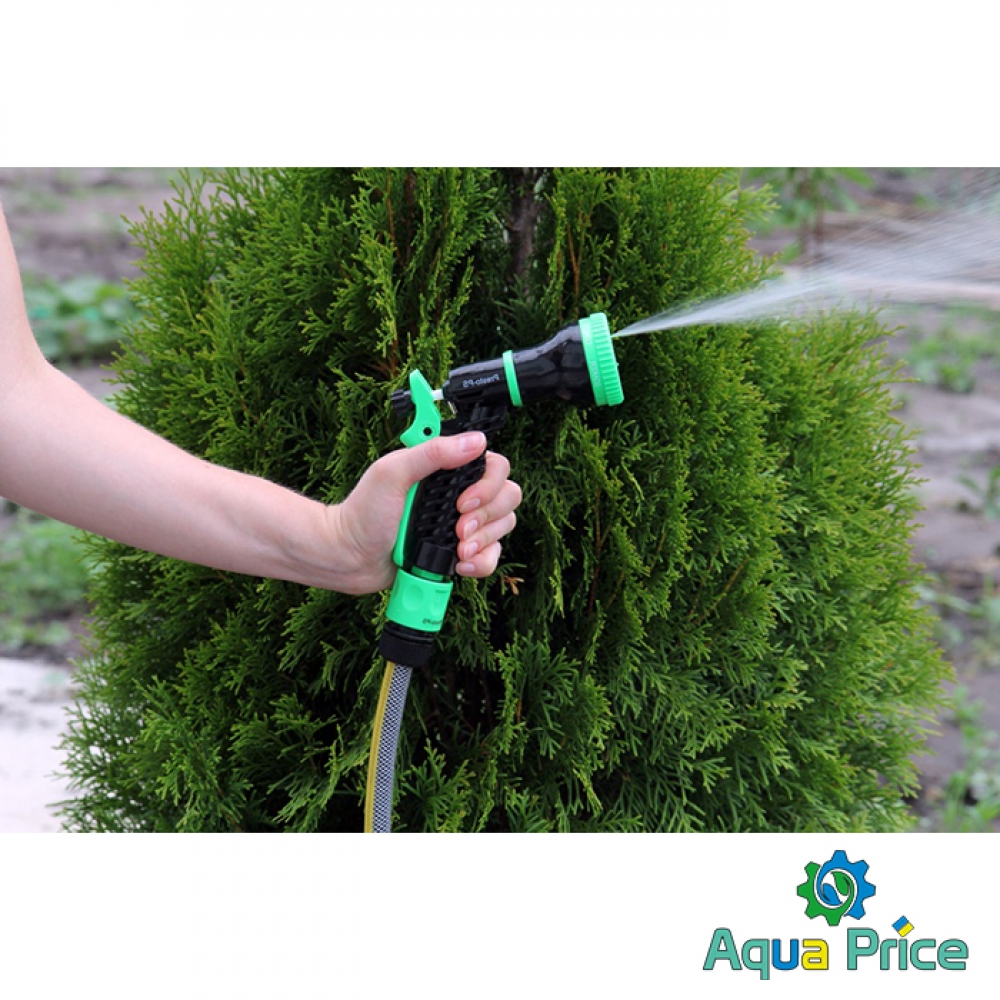 Пистолет для полива Presto-PS (4448) используется для ручного полива газонов средней и небольшой площади, огородов, цветников, уборки дорожек на придомовой территории, мытья садового инвентаря и техники. Поворотная головка пистолета имеет 7 положений и регулирует форму струи и степень распыления воды. Возможные режимы полива: мягкая струя, жесткая струя, конус, туман, душ, плоский вертикальный, плоский горизонтальный. Подключается к садовым шлангам диаметром 1/2, 5/8 и 3/4 дюйма при помощи стандартных коннекторов. Рекомендуемое рабочее давление в системе от 2 до 4 атмосфер. Изготовлен поливочный пистолет из качественного пластика, долговечный, стойкий к механическим повреждениям, воздействию ультрафиолета и водорастворимых удобрений.