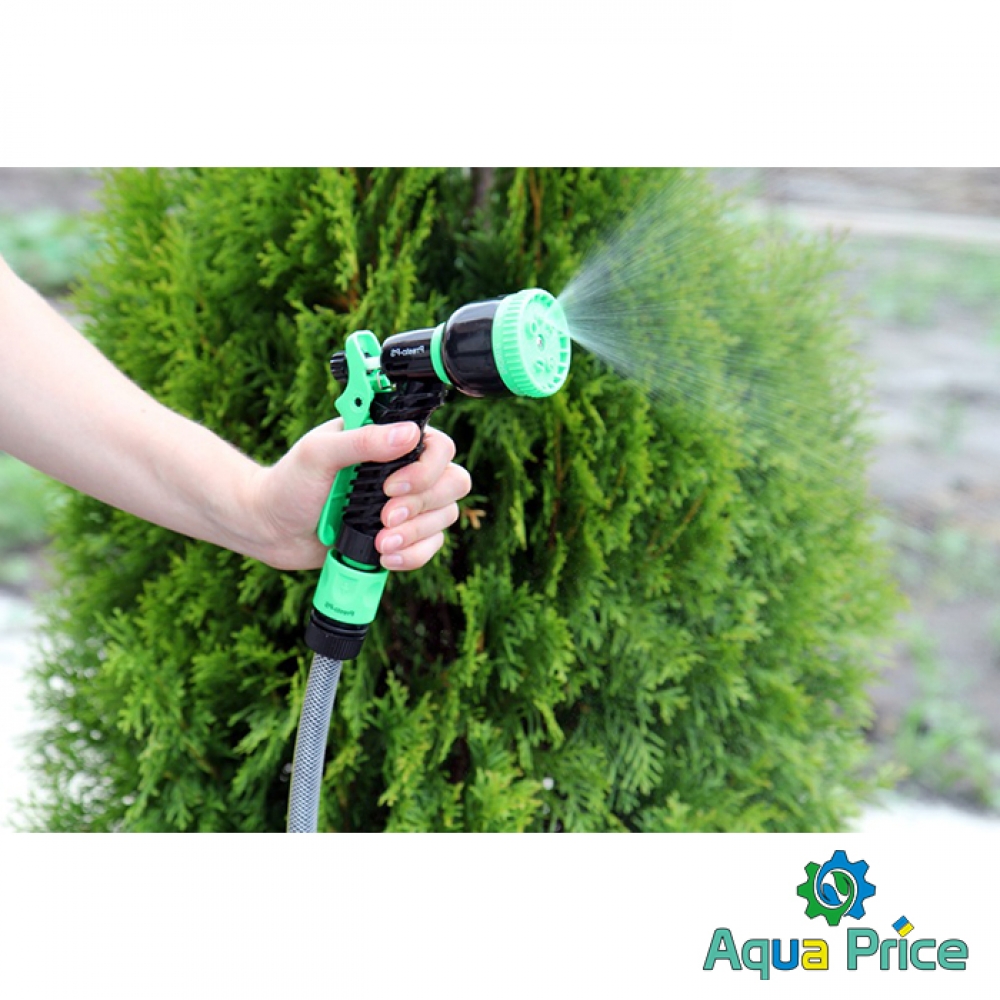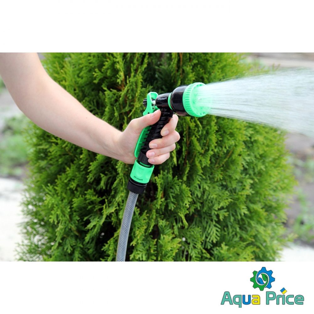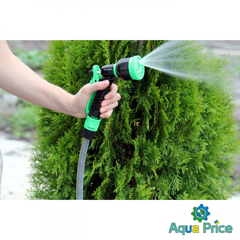 Пистолет для полива Presto-PS (4449) используется для ручного полива газонов средней и небольшой площади, огородов, цветников, уборки дорожек на придомовой территории, мытья садового инвентаря и техники. Поворотная головка пистолета имеет 7 положений и регулирует форму струи и степень распыления воды. Возможные режимы полива: мягкая струя, жесткая струя, конус, туман, душ, плоский вертикальный, плоский горизонтальный. Подключается к садовым шлангам диаметром 1/2, 5/8 и 3/4 дюйма при помощи стандартных коннекторов. Рекомендуемое рабочее давление в системе от 2 до 4 атмосфер. Изготовлен поливочный пистолет из качественного пластика, долговечный, стойкий к механическим повреждениям, воздействию ультрафиолета и водорастворимых удобрений.