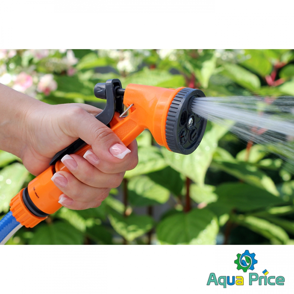 Пистолет для полива Presto-PS (7209) используется для ручного полива газонов средней и небольшой площади, огородов, цветников, уборки дорожек на придомовой территории, мытья садового инвентаря и техники. Поворотная головка пистолета имеет 5 положений и регулирует форму струи и степень распыления воды. Возможные режимы полива: мягкая струя, жесткая струя, душ, плоский горизонтальный, три струи. Подключается к садовым шлангам диаметром 1/2, 5/8 и 3/4 дюйма при помощи стандартных коннекторов. Рекомендуемое рабочее давление в системе от 2 до 4 атмосфер. Изготовлен поливочный пистолет из качественного пластика, долговечный, стойкий к механическим повреждениям, воздействию ультрафиолета и водорастворимых удобрений.